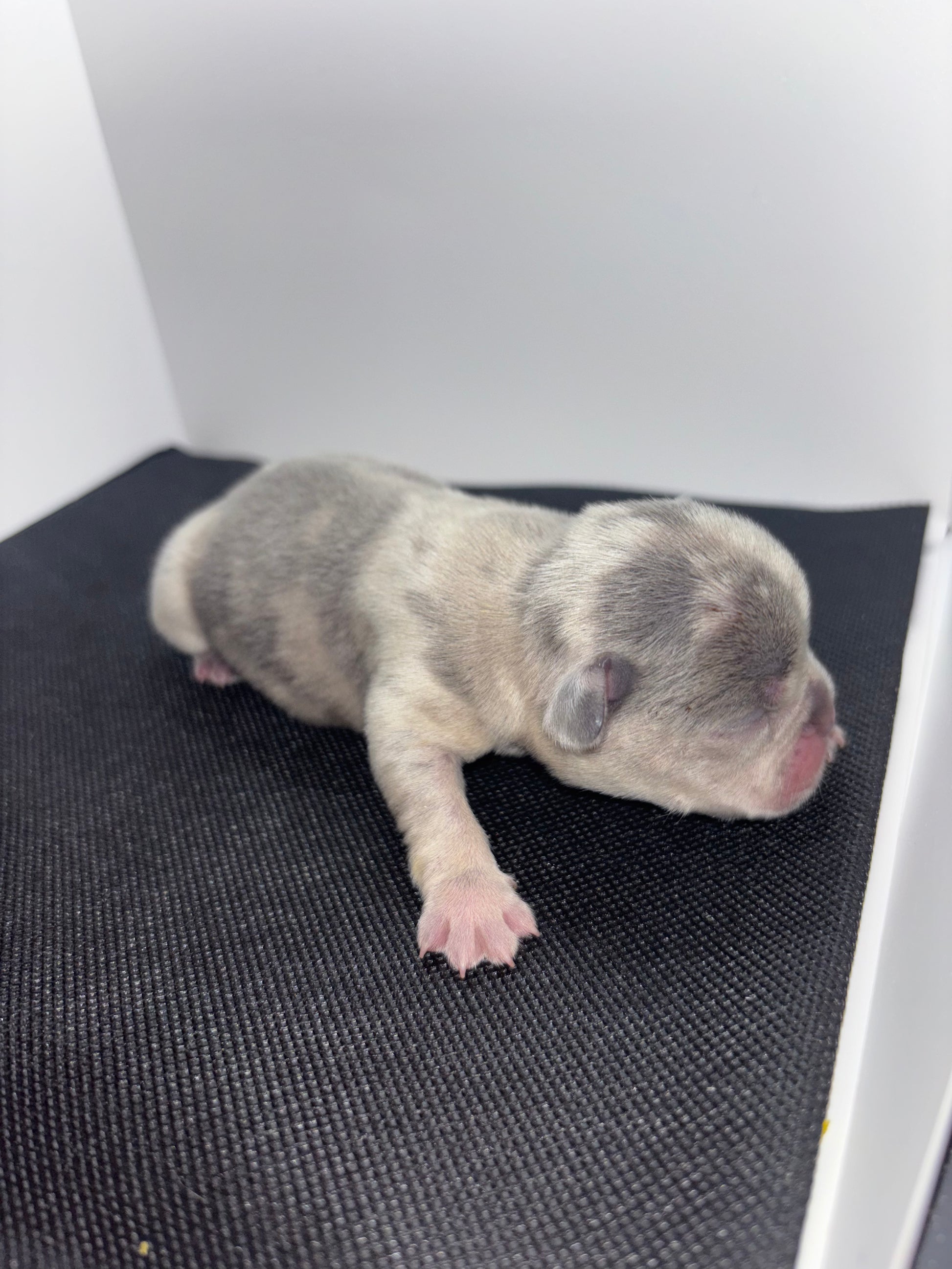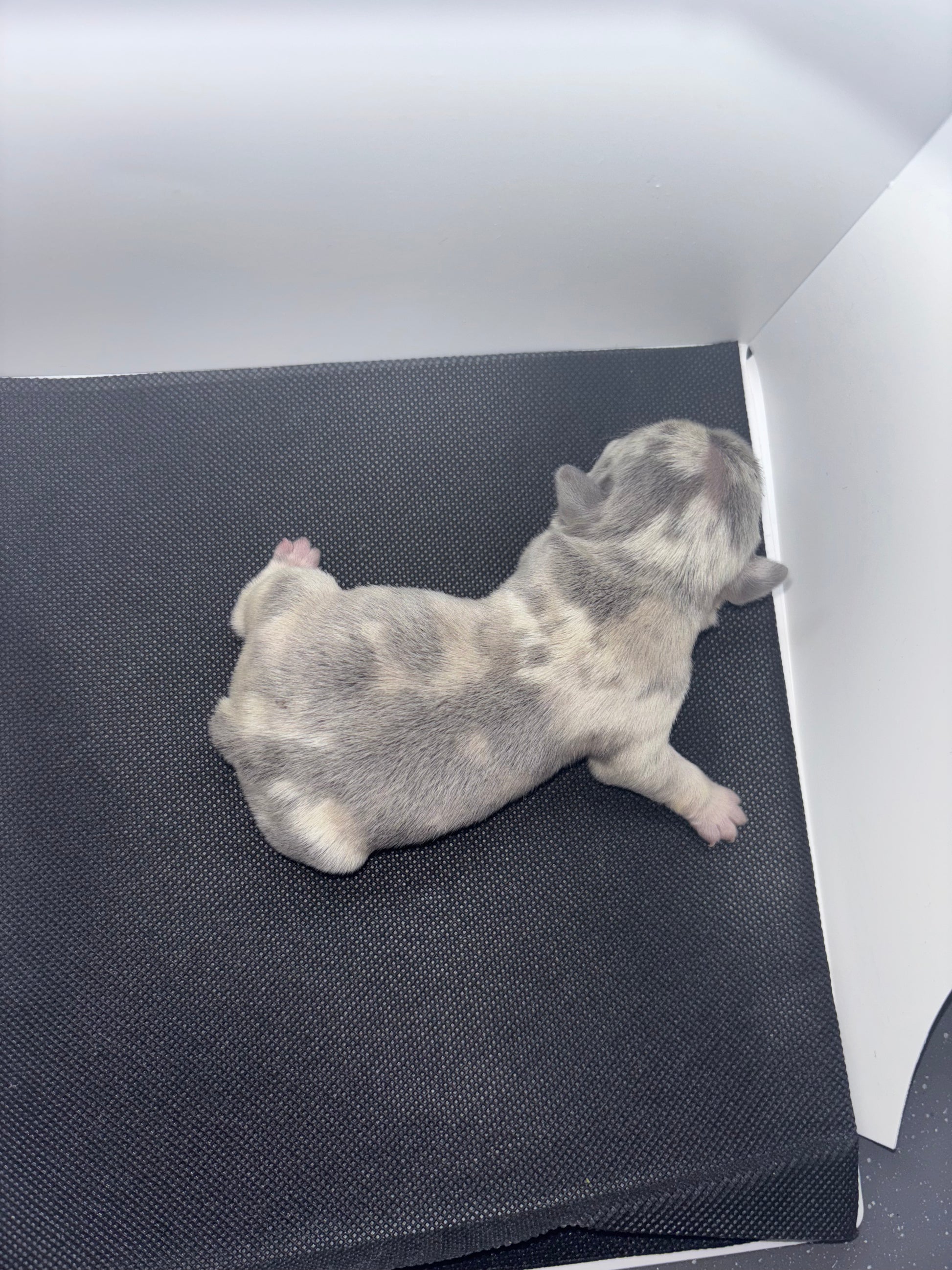 Our Female white & gray merle French bulldog makes the best family dogs, their loving demeanor and very playful personality will have you falling in love with them the first time you meet them , We are passionate about connecting families with exceptional French bulldogs that carry rich lineage and remarkable DNA traits. your new companion will easily become your best friend.